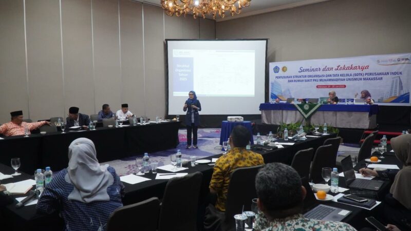 MAKASSAR, SULAWESI SELATAN (Kabar PROFESIANA.co.id) — Universitas Muhammadiyah (Unismuh) Makassar menapaki langkah strategis dalam penguatan tata kelola Rumah Sakit PKU Muhammadiyah dengan menggelar Seminar dan Lokakarya Penyusunan Struktur Organisasi dan Tata Kelola (SOTK) bersama mitra pengelola kesehatan dari Universitas Muhammadiyah Yogyakarta (UMY). Kegiatan ini berlangsung pada Kamis – Sabtu, 24–26 Juli 2025 di Hotel Aryaduta Makassar.