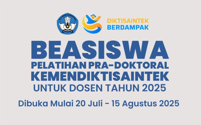 Beasiswa Pelatihan Pra-Doktoral PDCP Kemdiktisaintek untuk Dosen Tahun 2025, Dibuka Mulai 20 Juli s.d. 15 Agustus 2025