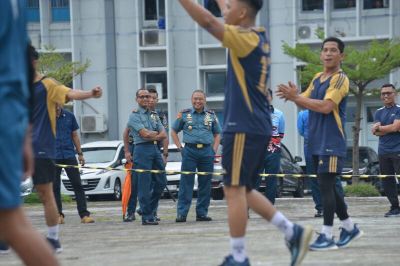KabarPROFESIANA.Co.id. Makassar–TNI AL- Pangkalan Utama TNI AL (Lantamal) VI Makassar Gelar Pertandingan Cabang Olahraga Volley Ball Antar Satker Di Lapangan Arafuru Mako Lantamal VI Makassar, Kamis (12/06/2025).