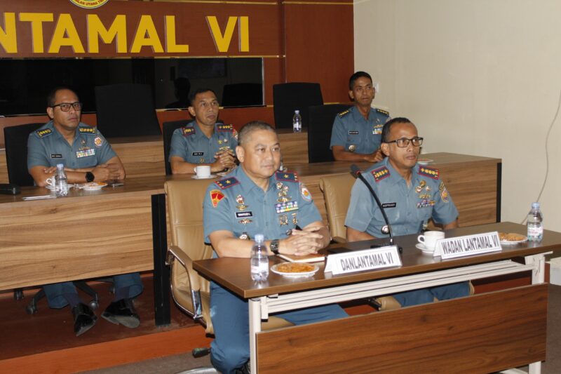 KabarPROFESIANA.Co.id. Makassar– Komandan Pangkalan Utama TNI Angkatan Laut (Danlantamal) VI Makassar Brigadir Jenderal TNI (Mar) Dr. Wahyudi, S.E., M.Tr.Hanla., M.M., M.Han., mengikuti video conference (vicon) pemusnahan serentak barang bukti illegal hasil tangkapan TNI AL yang diikuti oleh seluruh jajaran TNI AL di seluruh Indonesia bertempat di ruang Puskodal Mako Lantamal VI, Kamis (12/06/2025).