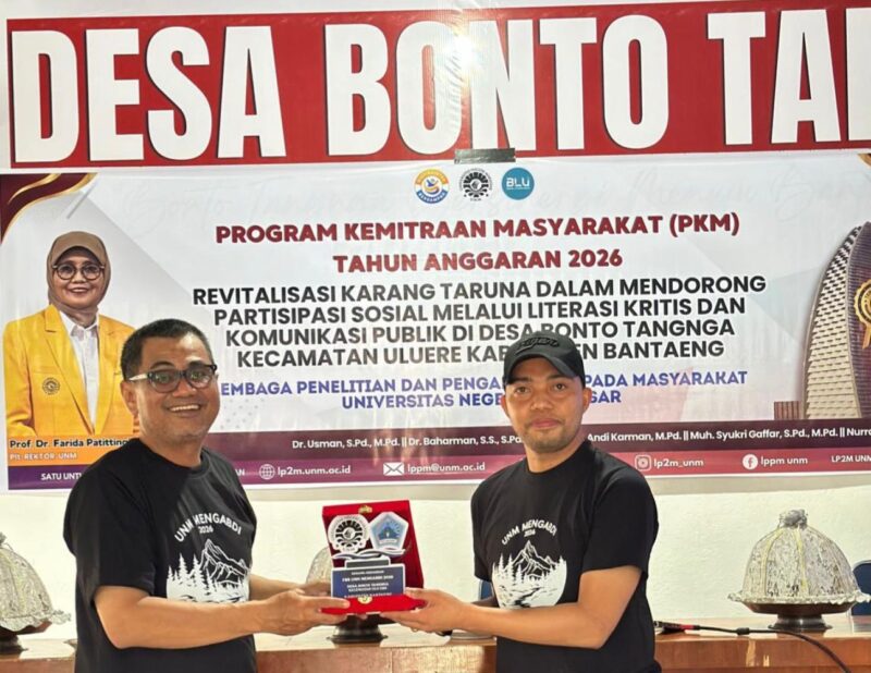 BANTAENG, SULAWESI SELATAN (KabarPROFESIANA.co.id)- Dosen Universitas Negeri Makassar (UNM) menggelar kegiatan Pengabdian kepada Masyarakat (PKM) bertajuk Revitalisasi Karang Taruna dalam Mendorong Partisipasi Sosial melalui Literasi Kritis dan Komunikasi Publik di Desa Bonto Tangnga, Kecamatan Uluere, Kabupaten Bantaeng pada Minggu, 26 April 2026, lalu. Kegiatan ini diikuti oleh sekitar 20–30 anggota Karang Taruna sebagai bagian dari upaya penguatan kapasitas pemuda desa.