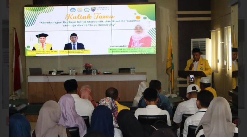 TERNATE, MALUKU UTARA (Kabar PROFESIANA.co.id) — Fakultas Keguruan dan Ilmu Pendidikan (FKIP) Universitas Khairun (Unkhair) Ternate menggelar Kuliah Tamu Internasional dengan tema “Membangun Budaya Kerja Akademik dan Riset Berkualitas Menuju World Class University” yang dilaksanakan di Aula Mini Kampus FKIP Universitas Khairun, Senin (15/12/2025).