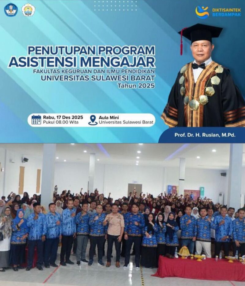 MAJENE, SULAWESI BARAT (Kabar PROFESIANA.co.id) — Fakultas Keguruan dan Ilmu Pendidikan (FKIP) Universitas Sulawesi Barat (Unsulbar) menyelenggarakan kegiatan Penutupan Program Asistensi Mengajar Tahun 2025 pada Selasa, 17 Desember 2025, bertempat di Aula Mini Universitas Sulawesi Barat. Kegiatan ini menjadi penanda berakhirnya rangkaian pelaksanaan asistensi mengajar yang melibatkan ratusan mahasiswa FKIP di sekolah-sekolah mitra.