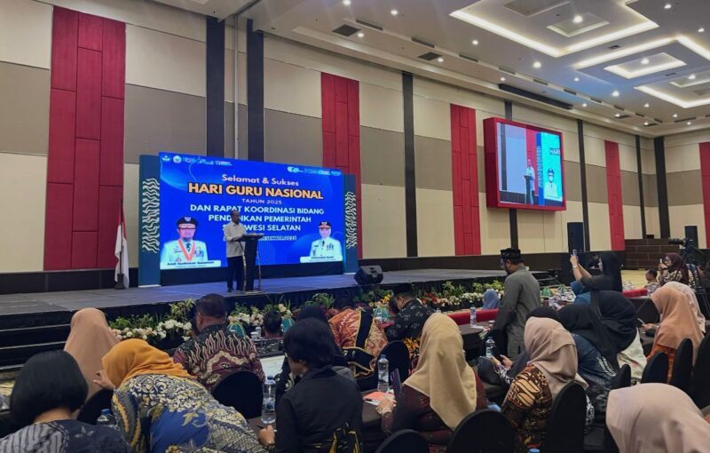 MAKASSAR, SULAWESI SELATAN (Kabar PROFESIANA.co.id) — Peringatan Hari Guru Nasional yang dirangkaikan dengan Rapat Koordinasi Bidang Pendidikan Pemerintah Provinsi Sulawesi Selatan berlangsung khidmat dan penuh agenda strategis. Acara ini dihadiri Kepala Dinas Pendidikan Provinsi Sulsel H. Iqbal Nadjamuddin, Kepala BPSDM Sulsel, sejumlah pejabat pemerintah, serta seluruh kepala SMA/SMK se-Sulawesi Selatan di Hotel Dalton, Makassar, Selasa (2/12/2025)