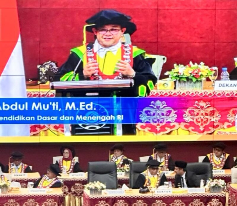 Hal itu disampaikan Mendikdasmen, Prof. Dr. Abdul Mu’ti, M.Ed. dalam orasi ilmiah pada Upacara Peringatan Diesnatalis ke-64 Universitas Negeri Makassar (UNM), Sabtu (2/8/2025), di Ballroom Teater Lantai 2 Gedung Menara Pinisi yang turut dihadiri Gubernur Sulawesi Selatan, Tamsil Linrung senator DPD RI, Ketua DPRD Provinsi Sulawesi Selatan, Walikota Makassar, Walikota Makassar, Kapolrestabes Makassar, Bupati Gowa, Forkopimda, mitra kerja UNM, dan civitas akademika UNM.