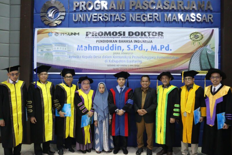 Kabar PROFESIANA.co.id – Makassar. Kepala Desa Bontotangnga Kabupaten Bantaeng Provinsi Sulawesi Selatan berhasil meraih gelar doktor di Bidang Ilmu Pendidikan Bahasa di Program Pascasarjana (PPS) Universitas Negeri Makassar (UNM) pada Senin, 23 Juni 2025, bertempat di Aula AD Lantai 5 Gedung PPS UNM Kampus Gunungsari Barat.