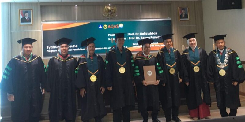 Setelah melalui proses ujian yang berlangsung secara komprehensif dan ilmiah, Syafrudin Sapsuha dinyatakan lulus dan berhak menyandang gelar Doktor dalam bidang Pendidikan Kependudukan dan Lingkungan Hidup (PKLH) dengan predikat sangat memuaskan. (Rus/Ans/Why)
