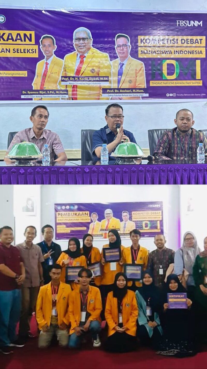 Demikian penegasan Dekan Fakultas Bahasa dan Sastra, Universitas Negeri Makassar (FBS UNM) ketika memberi sambutan dalam rangka pembukaan Kompetisi Debat Mahasiswa Indonesia (KDMI) Tingkat FBS sebagai ajang seleksi untuk maju ke Tingkat UNM, pada Kamis (12/6/2025) di Ruang Rapat Kampus Parangtambung.