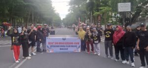 Jalan Sehat dan Bugar Bersama -KWIM-ini dipimpin Plt Ketua KWIM Jafrat Syukur. Mereka mengambil titik kumpul di depan Lapangan Hasanuddin, tepat pukul 06.30 WITA.