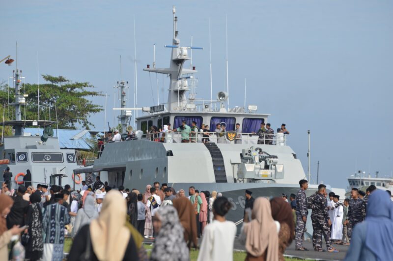 Masyarakat Kota Makassar Antusias Naik Kapal Perang TNI AL Usai Shalat Idul Adha 1446 H/2025 di Lantamal VI