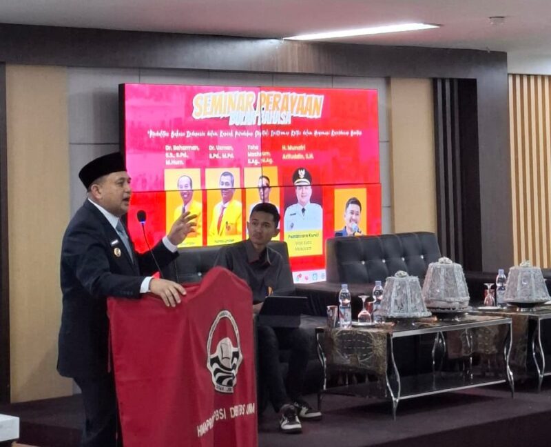 MAKASSAR, SULAWESI SELATAN (KabarPROFESIANA.co.id) — Wali Kota Makassar, Munafri Arifuddin, menegaskan komitmennya untuk mengutamakan penggunaan Bahasa Indonesia yang baik dan benar di lingkungan Pemerintah Kota Makassar. Hal tersebut disampaikan dalam perayaan Bulan Bahasa yang digelar oleh Himpunan Mahasiswa Program Studi Pendidikan Bahasa dan Sastra Indonesia (Himaprodi PBSI) Fakultas Bahasa dan Sastra Universitas Negeri Makassar (FBS UNM), bertempat di Ballroom D Menara Pinisi, Universitas Negeri Makassar, Selasa (28/10/2025) lalu.