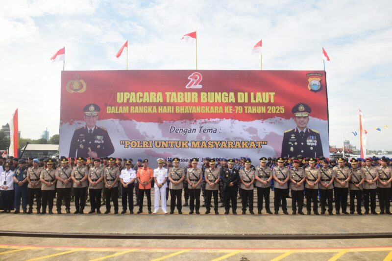 MakassarPROFESIANA.Co.id. Makassar–Dalam Memperingati Hari Bhayangkara ke -79 tahun 2025, Komandan Lantamal VI (Danlantamal VI) Brigjen TNI (Mar) Dr. Wahyudi, S.E., M.Tr.Hanla., M.M., M.Han dalam hal ini yang diwakilkan oleh Komandan Satuan Kapal Patroli (Dansatrol) Lantamal VI Kolonel Laut (P) Agus Tri Arianto S.T., M.Tr.Opsla mengikuti tabur bunga dengan tema “Polri Untuk Masyarakat” bertempat di Dermaga Peti Kemas Soekarno Hatta Selatan Makassar. Senin (23/06/2025).