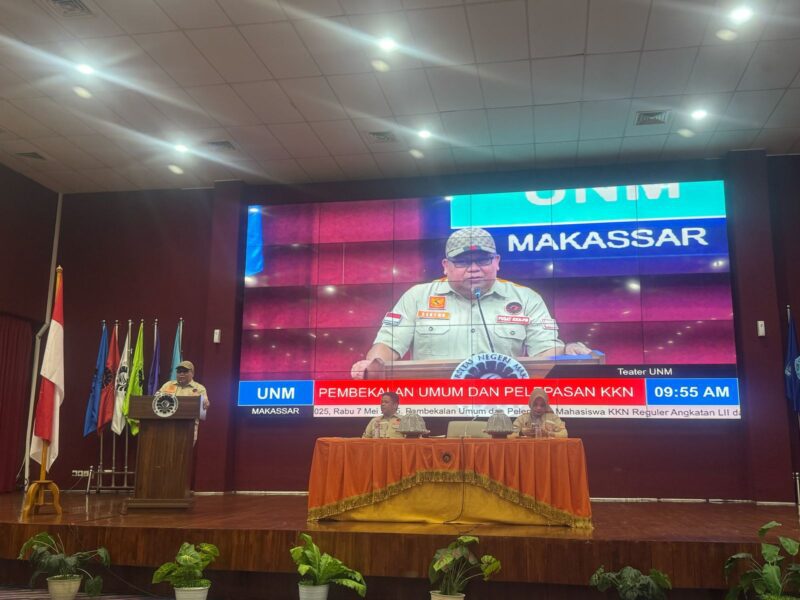 Pesan Rektor Universitas Negeri Makassar (UNM), Prof.Dr. Karta Jayadi, M.Sn. disampaikan kepada mahasiswa pada kegiatan Pembekalan Umum dan Pelepasan Mahasiswa KKN Reguler Angkatan LII dan KKN Terpadu Angkatan XXX UNM Semester Genap Tahun Akademik 2024/2025, Rabu (7/5/2025) di Ball Room Teater Lantai 2 Gedung Menara Pinisi.