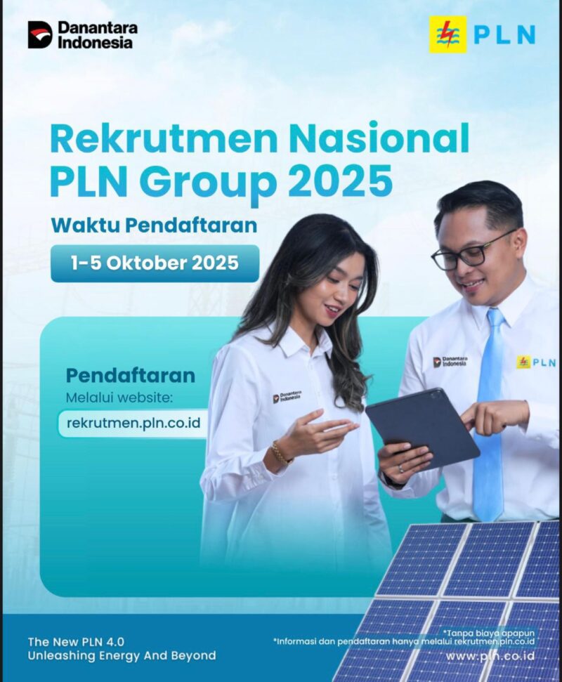 Jakarta, 30 September 2025 (Kabar PROFESIANA.co.id) – PT PLN (Persero) kembali membuka kesempatan berkarir bagi putra-putri terbaik bangsa melalui Rekrutmen Umum PLN Group 2025 yang dimulai pada 1 Oktober 2025. Rekrutmen ini sebagai wujud nyata kontribusi PLN terhadap pembangunan sumber daya manusia di sektor energi.