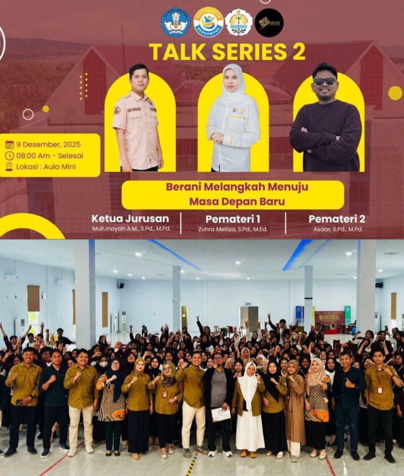 MAJENE, SULAWESI BARAT (Kabar PROFESIANA.co.id) — Program Studi Pendidikan Guru Sekolah Dasar (PGSD) Fakultas Keguruan dan Ilmu Pendidikan (FKIP) Universitas Sulawesi Barat (UNSULBAR) kembali menyelenggarakan Talk Series 2, program rutin prodi yang dilaksanakan setiap tiga bulan sekali. Tahun ini, kegiatan mengangkat tema “Berani Melangkah Menuju Masa Depan Baru” dan berlangsung di Aula Mini FKIP. Selasa 9 Desember 2025 mulai pukul 08.00 WITA sampai selesai.