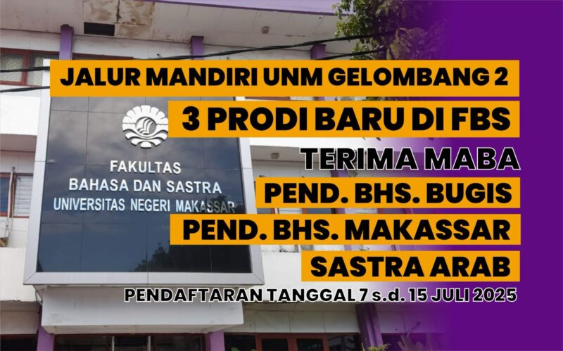 Kouta daya tampung untuk masing-masing prodi baru itu, sebanyak 39 orang. Mari manfaatkan kesempatan emas ini untuk menjadi bagian dari pembangunan bahasa, sastra, dan budaya Makassar dan Bugis serta Arab.