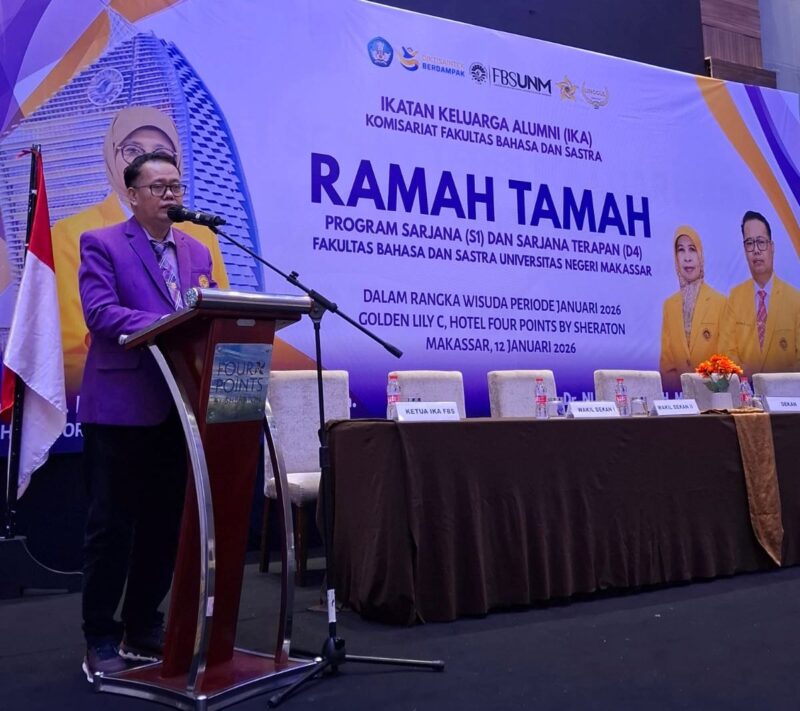 MAKASSAR, SULAWESI SELATAN (KabarPROFESIANA.co.id) — Ramah tamah lulusan Fakultas Bahasa dan Sastra (FBS) Universitas Negeri Makassar (UNM) di Hotel Four Points, Senin, 12 Januari 2026, menjadi ruang refleksi capaian sekaligus penegasan agenda akademik FBS ke depan. Kegiatan ini menandai pelepasan lulusan dengan semangat kolaborasi dan penguatan mutu.