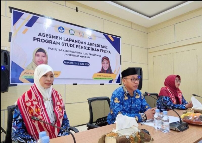KabarPROFESIANA.co.id -Ternate, Maluku Utara– Program Studi Pendidikan Fisika Fakultas Keguruan dan Ilmu Pendidikan (FKIP) Universitas Khairun (Unkhair) Ternate Maluku Utara menggelar kegiatan Asesmen Lapangan (AL) yang berlangsung di Aula Mini Kampus FKIP Unkhair. Kegiatan ini secara resmi dibuka oleh Rektor Unkhair, Dr. M. Ridha Ajam, M.Hum., yang didampingi para jajaran pimpinan universitas dan fakultas.