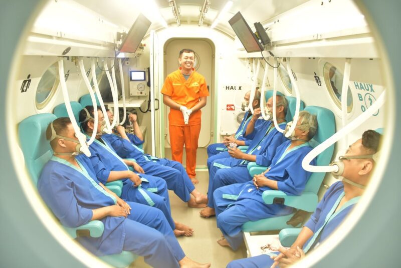 Terapi Oksigen Hiperbarik adalah pengobatan dengan menghirup oksigen murni di ruangan bertekanan tinggi, hingga 2-3 kali tekanan udara normal, sehingga paru-paru menyerap oksigen lebih banyak.