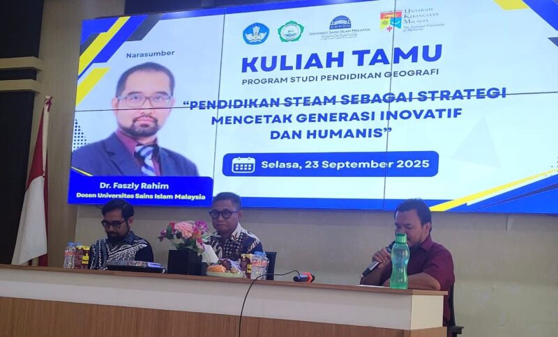 TERNATE, MALUKU UTARA (Kabar PROFESIANA.co.id) – Program Studi Pendidikan Geografi Fakultas Keguruan dan Ilmu Pendidikan (FKIP) Universitas Khairun (Unkhair) Ternate kembali mengukuhkan komitmennya dalam memperkuat kolaborasi internasional dengan menggelar kuliah tamu bertema “Pendidikan STEAM Sebagai Strategi Mencetak Generasi Inovatif dan Humanis”. Kegiatan yang dilaksanakan di Aula Mini FKIP Unkhair Ternate ini menghadirkan narasumber internasional, Dr. Faszly Rahim, dosen dari Universitas Sains Islam Malaysia (USIM).