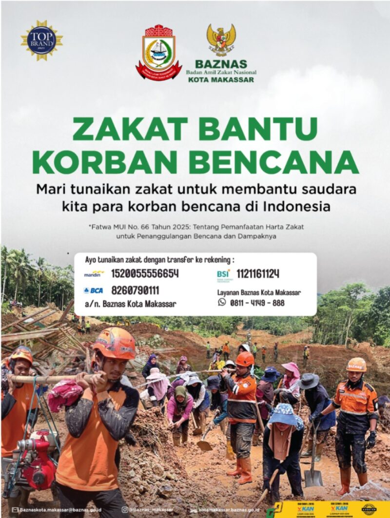 “Bencana Sumatera misalnya, membutuhkan kita semua!” demikianlah seruan yang terdengar di seluruh jaringan BAZNAS, dari pusat hingga daerah. Termasuk, BAZNAS Kota Makassar
