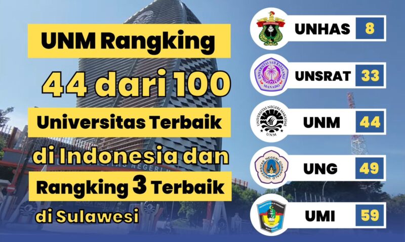 MAKASSAR, SULAWESI SELATAN (Kabar PROFESIANA.co.id) — Webometrics salah satu lembaga pemeringkatan tepercaya, pada bulan Juli 2025 telah merilis hasil penilaian terhadap universitas di dunia, termasuk di Indonesia. Alhamdulillah, Universitas Negeri Makassar (UNM) masuk dalam peringkat 44 dari 100 terbaik di Indonesia. Tahun 2024, UNM peringkat 49.